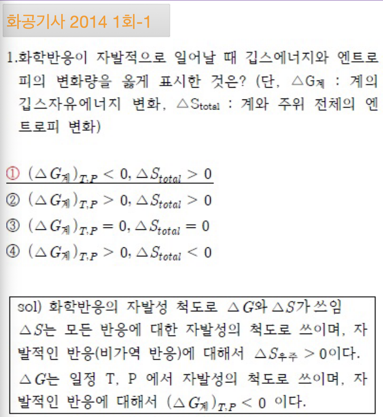 지금은, 자발적 과정과 비자발적 과정이라는 것이 있고, 자발성을 판단할 수 있는 열역학적 도구가 여러가지가 있다는 것만 알고 넘어갑시다.