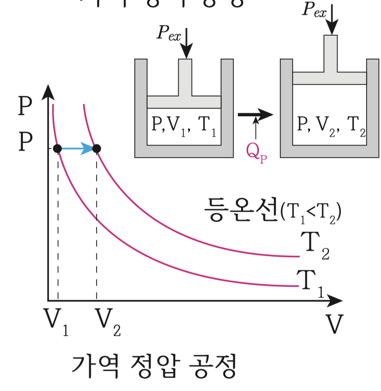 엔탈피는 일정압력에서 출입한 열과 같아요. 이 그림에서는 정압공정에서 출입한 열을 의미해요.